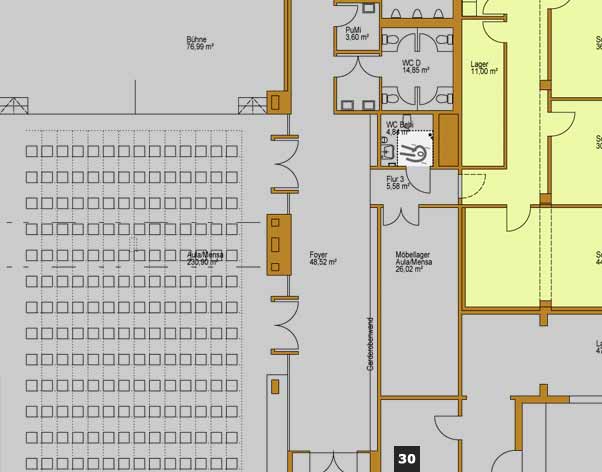 Machbarkeitsstudie Umbau einer Kaufhalle zur Schulmensa, Teltow 2012